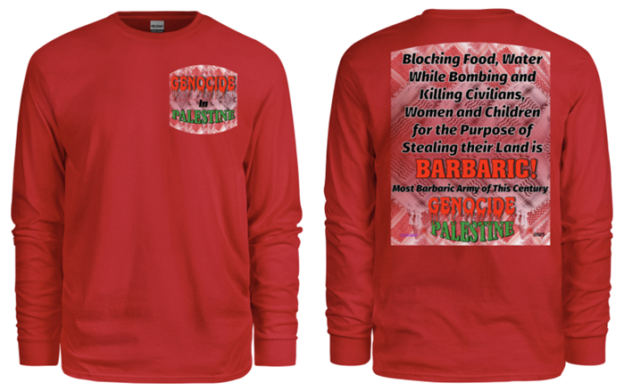 BACK Wordings: Blocking Food Water While Bombing and Killing Civilians, Women and Children for the Purpose of Stealing their Land is BARBARIC! Most Barbaric Army of This Century. Genocide Palestine
